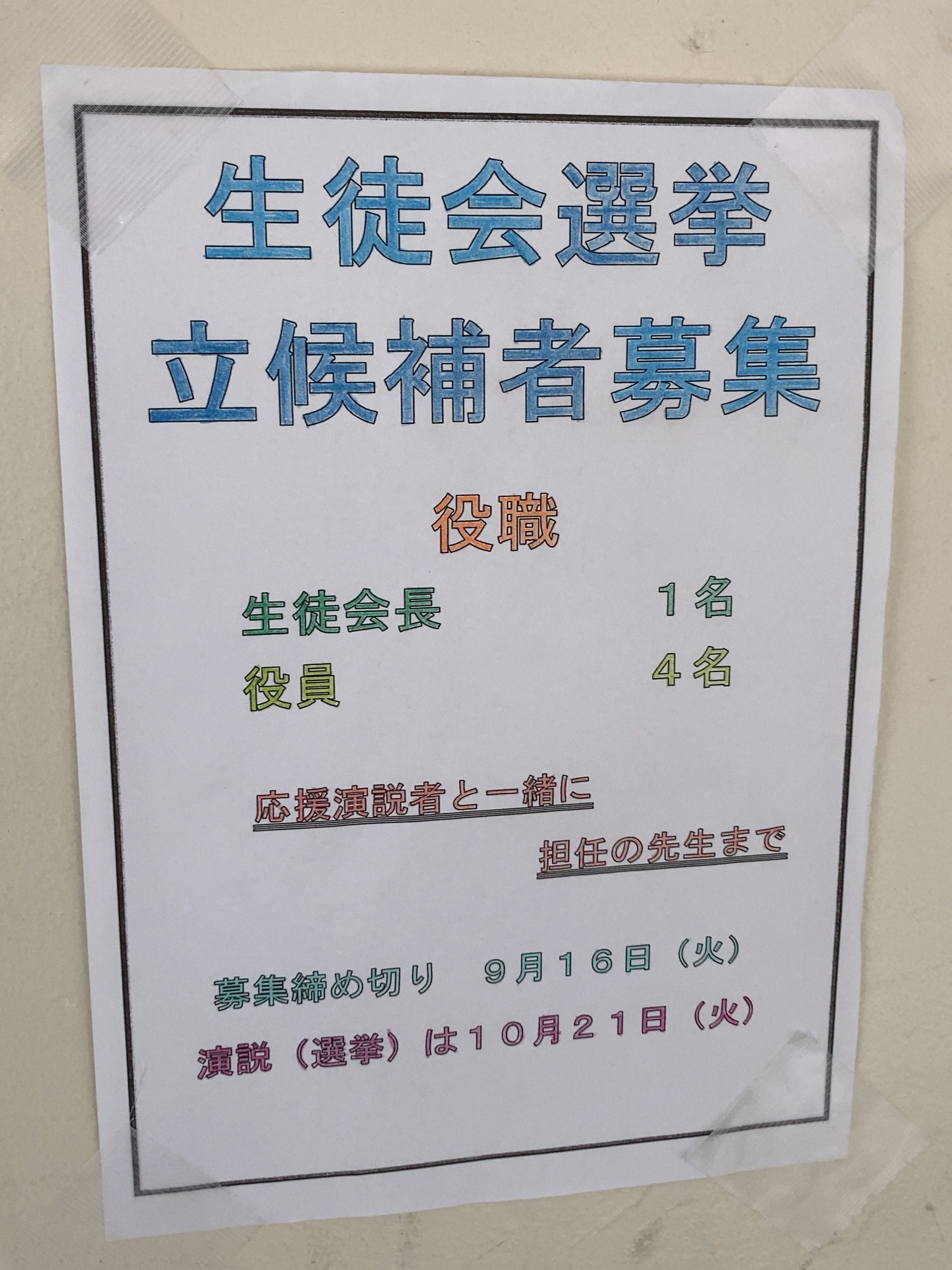 学校の様子(生徒会選挙 立候補募集ポスター)